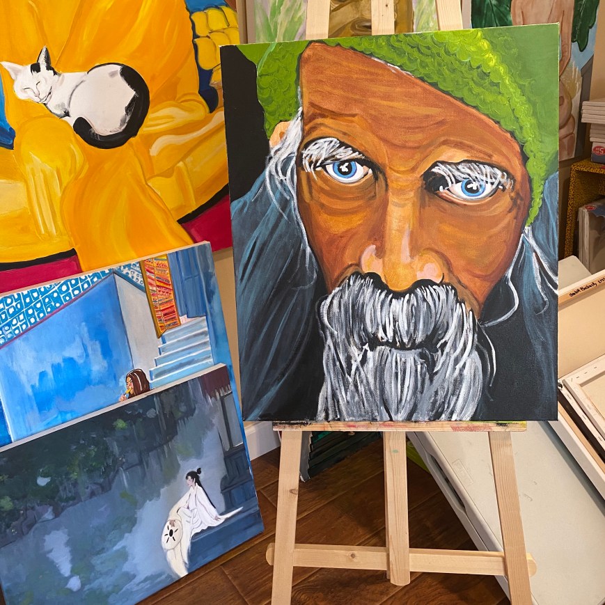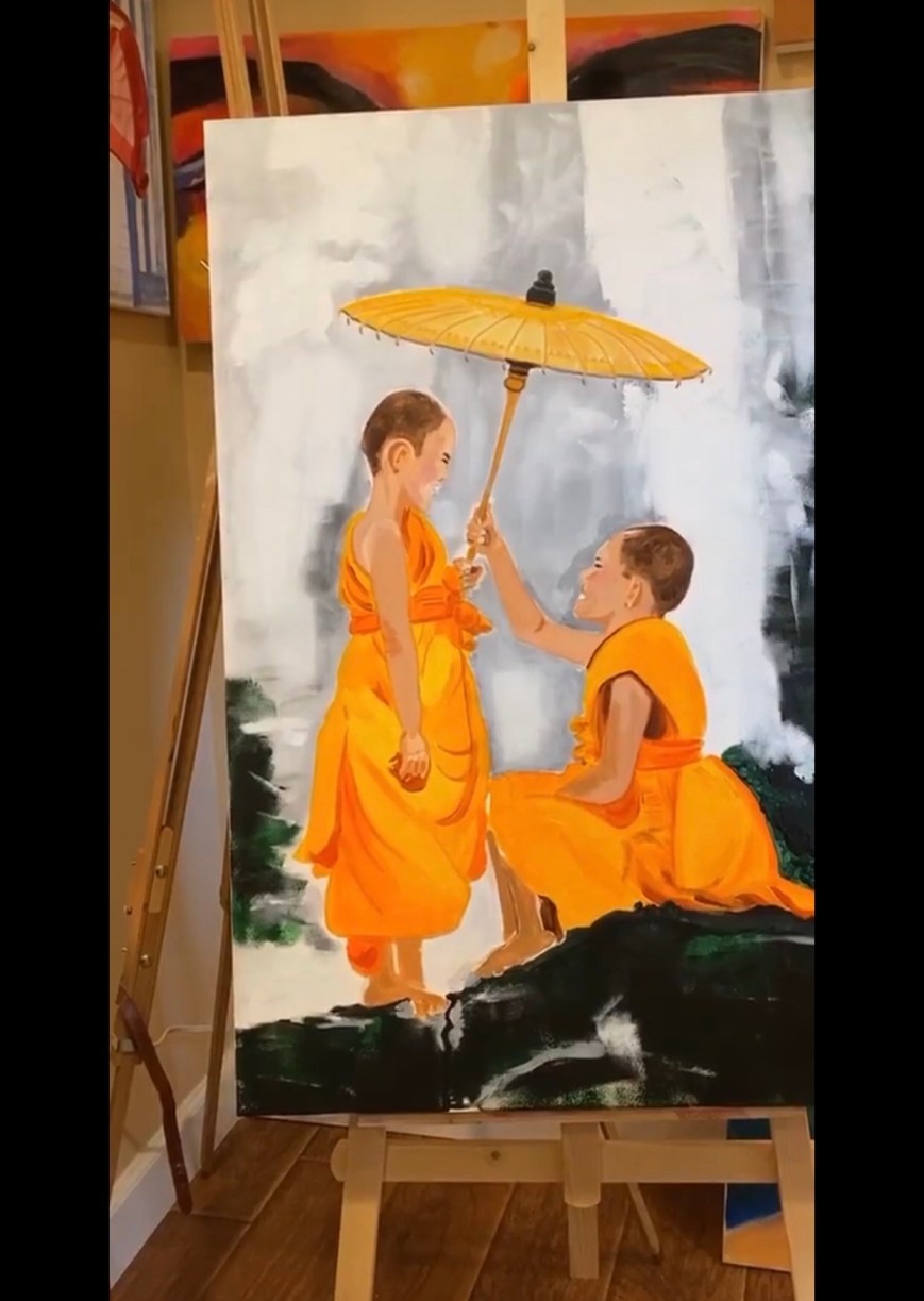 Her work transcends traditional boundaries, capturing the essence of spirituality and inner peace through her beautiful creations. Her paintings, which often feature subjects such as Buddha; monks and portraits, serve as a form of meditation for both the artist and the viewer. Charlotte’s art reflect her deep appreciation for the world around her.